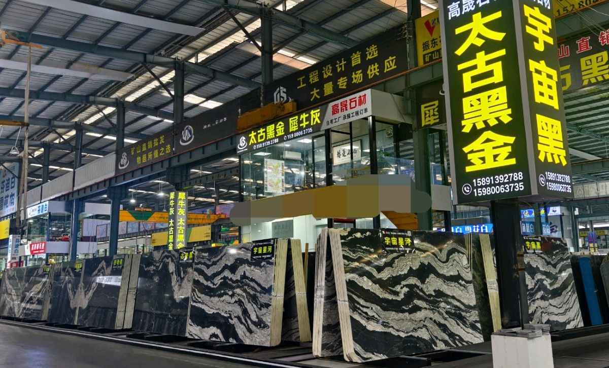 福建泉州南安市水頭鎮(zhèn)華輝市場@高晟石材-古奇黑-宇宙黑-宇宙星河專場-華輝店6號門6通道E4