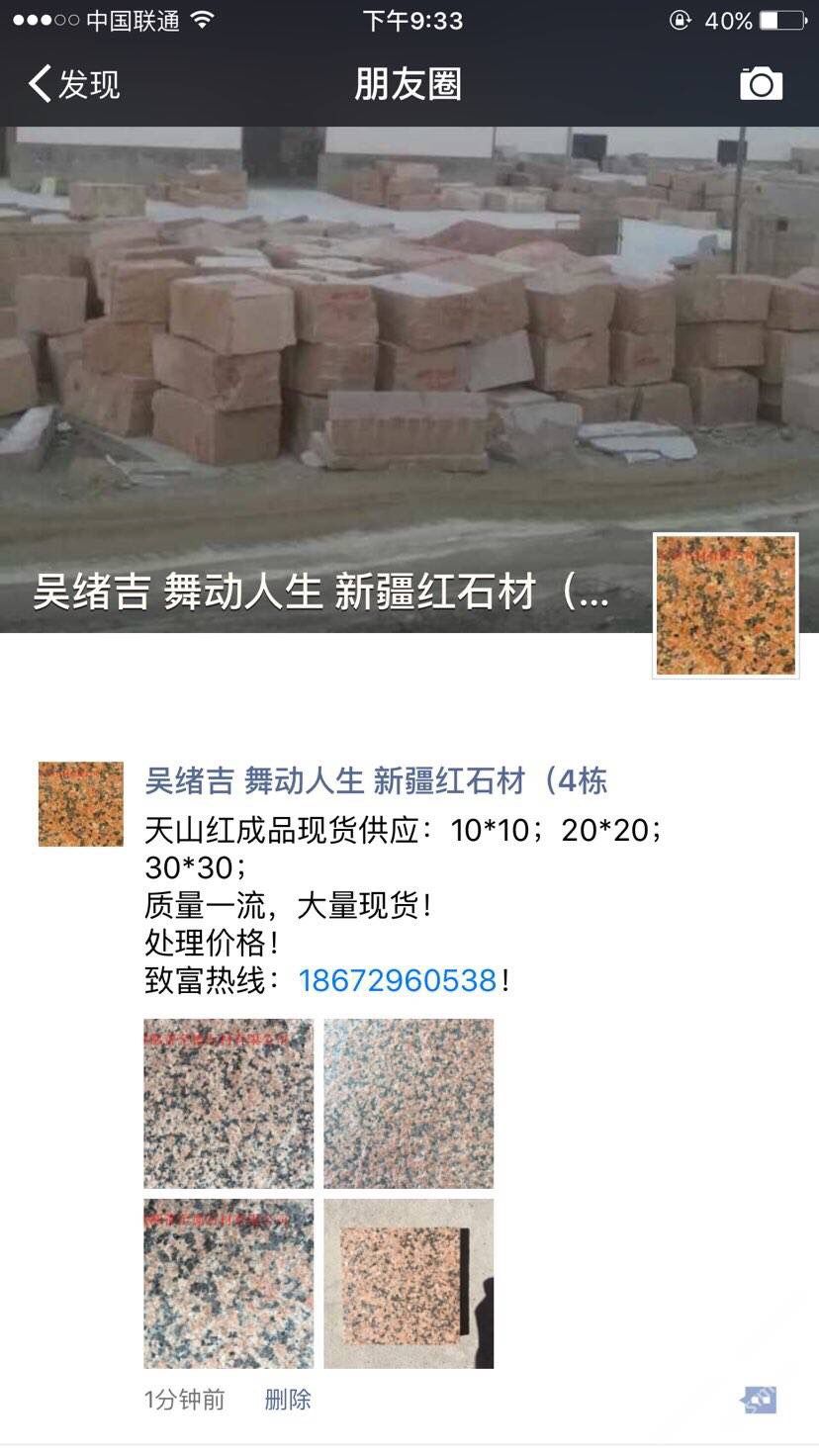 鄯善縣至德石業(yè)有限公司位于美麗的葡萄之鄉(xiāng)~新疆吐魯番鄯善縣鄯善石材工業(yè)園。本公司主要經(jīng)營天山紅,新疆紅,鄯善紅,新疆黃,雪蓮花,灰麻等各類新疆石種,擁有先進(jìn)的生產(chǎn)設(shè)備, 雄厚的技術(shù)力量,是一家集礦山開采,石材加工,銷售于一體的多年老品牌石材公司。本公司還設(shè)石材銷售點(diǎn)于各個大型建材市場,廣東云浮市思勞,廣東云浮市珠洞,福建省水頭鎮(zhèn)閩南建材市場。承諾滿足不同地區(qū)的采購商多種需求。我們期待您的來電,竭誠歡迎新老客戶共創(chuàng)雙贏。