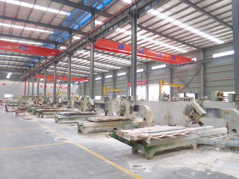 康典石業(yè)江蘇有限公司位于南通東升國際石材產(chǎn)業(yè)城內(nèi),購置土地50余畝,占地面積: 34366m,廠房面積23000m,各類石材加工先進(jìn)設(shè)備80多臺(套),各類技術(shù)人員及安裝工人500余名??档涫瘶I(yè)是集石材國際貿(mào)易、一次荒料加工、二次精品加工以及一流施工安裝為一體的大型石材企業(yè)。\\\