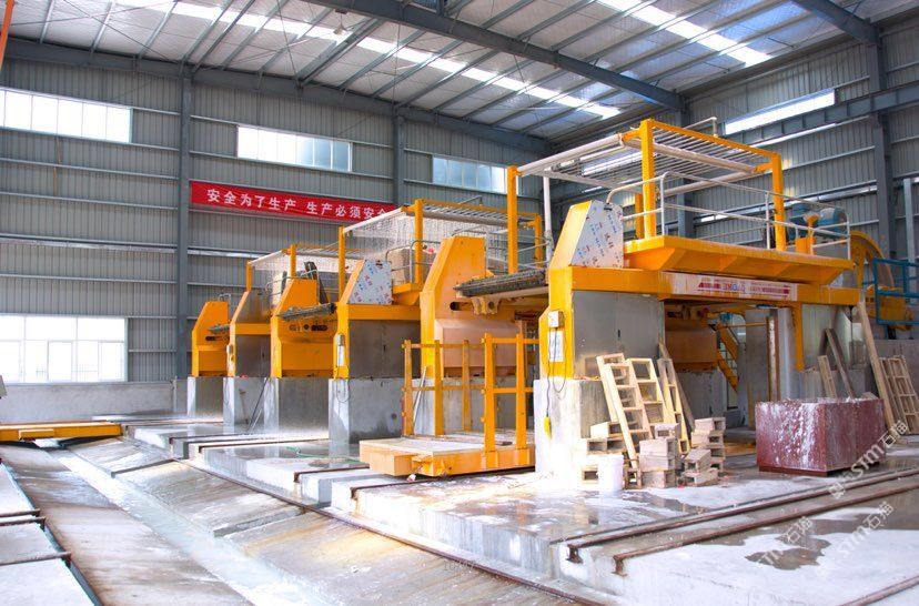 公司擁有3臺進(jìn)口沙拉據(jù),12臺進(jìn)口靖佑紅外線切割機(jī),2臺水刀切割機(jī),各類線條機(jī)、仿形機(jī)、雕刻機(jī)等等50多臺(套)。每周切割產(chǎn)量約為5000平方左右,每周成品出廠量可達(dá)3000方左右。\\\