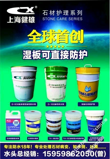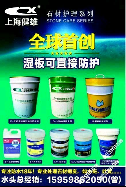 上海健雄建材有限公司成立于1998年,是上海一家從事石材養(yǎng)護(hù)方面研究的專業(yè)機(jī)構(gòu),致力于新型有機(jī)硅表面活性材料的開發(fā)和合成,達(dá)到有機(jī)硅的防護(hù)效果!本公司針對(duì)石材品種打造各種石材養(yǎng)護(hù)劑和石材病變處理劑化學(xué)品,能適應(yīng)于客戶高質(zhì)量的要求,以質(zhì)量為核心的理念服務(wù)于各種石材企業(yè)!