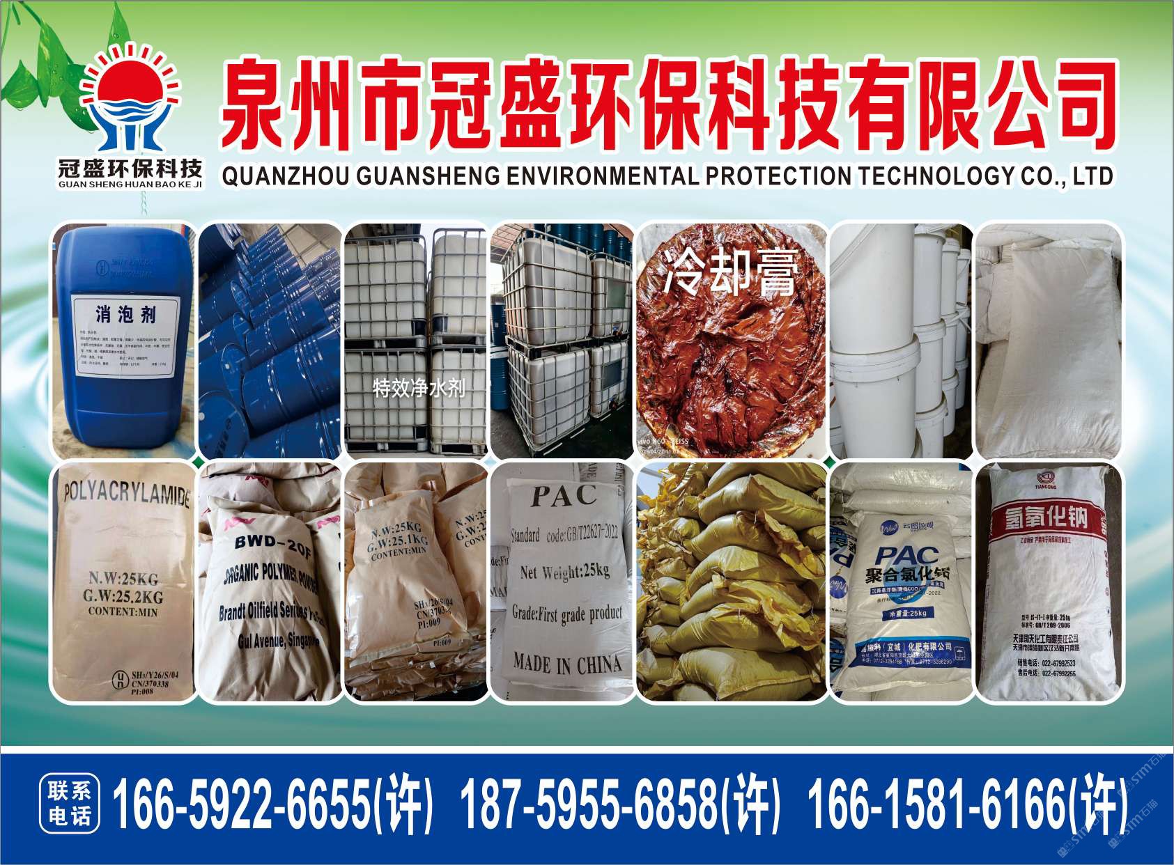 主營產品:凈水劑,冷卻劑,冷卻粉,大理石人造石專用凈水劑,沉淀粉,消泡劑,消毒凈水劑,防銹凈水劑,除銹劑,除臭劑,聚丙烯酰胺,聚合氯化鋁,鹵精,洗沙專用凈水劑,壓濾機專用凈水劑,陶瓷廠專用凈水劑(黃藥 白藥)等所有水處理環(huán)保材料……