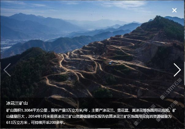 位于四川省攀枝花市米易縣,本公司專業(yè)做花崗石礦山開采、花崗石板材生產(chǎn)及銷售。與廈門萬里石股份有限公司合作開采“冰花藍(lán)”寨子山礦山,與高時(shí)石材米易愉天礦業(yè)合作開采“冰花藍(lán)”石板溝礦山,并自有“豹皮花”礦山和米易東成礦業(yè)。年產(chǎn)花崗石荒料3萬立方,在米易長(zhǎng)坡工業(yè)園區(qū)控股三個(gè)工廠合計(jì)面積120余畝。年產(chǎn)花崗石板材80萬平米。旗下主要產(chǎn)品:“冰花藍(lán)”、“豹皮花”、“芝麻黑”、“芝麻灰”。產(chǎn)品主要用于大樓外墻干掛、廣場(chǎng)地鋪、路緣石、墓碑石、景觀園林用石等。