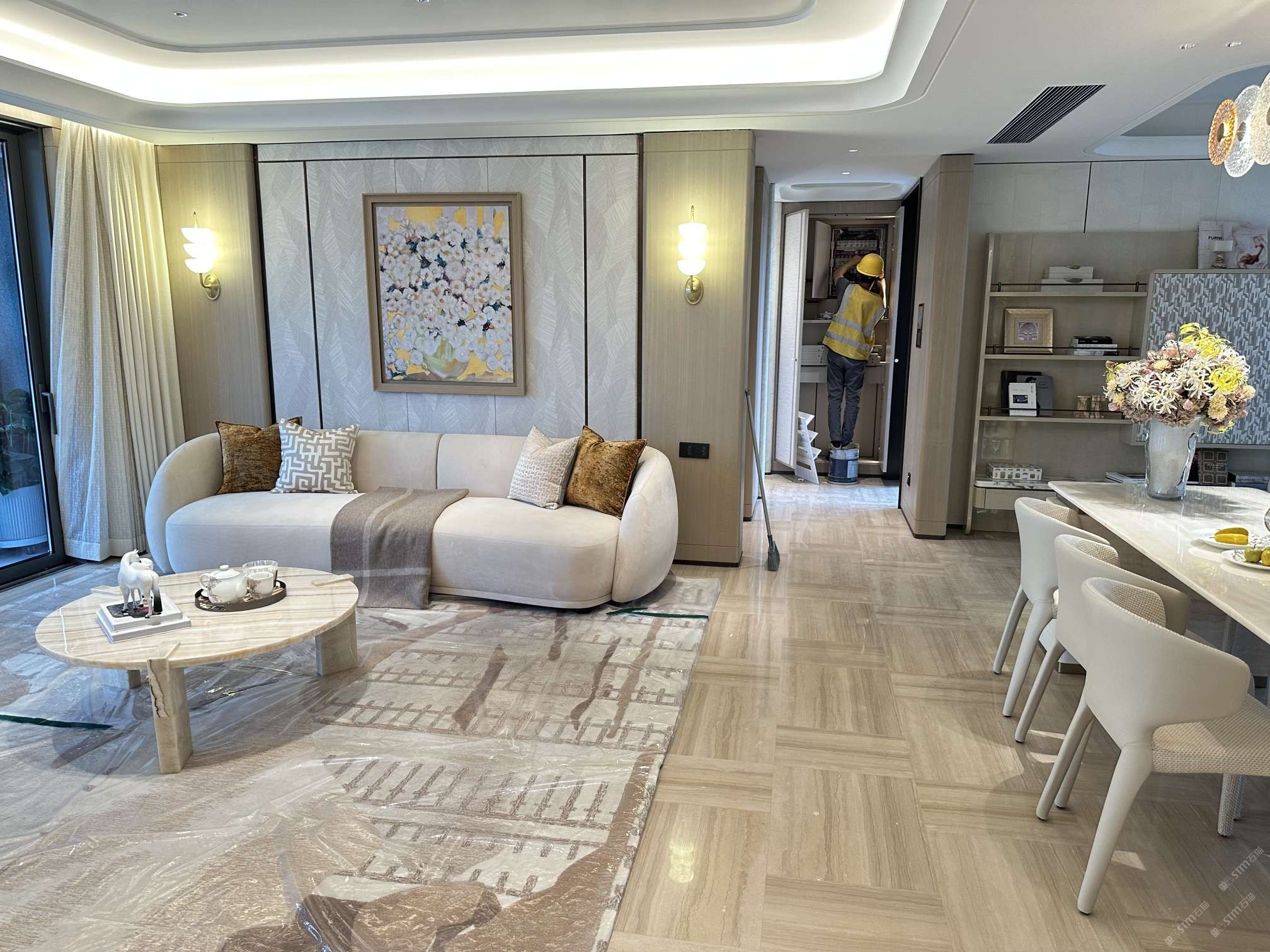 公司優(yōu)勢:精裝工程·復(fù)合板·水刀拼花,一站式服務(wù)