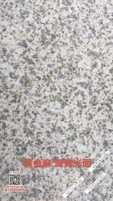 發(fā)布信息: 隨州黃金麻石材-隨州白麻花崗巖-光面黃金麻-燒面黃金麻-荔枝面黃金麻-光面白麻-燒面白麻-荔枝面白麻 隨縣三和石業(yè) 劉經(jīng)理 18100550054(微信同號(hào))專業(yè)隨州黃金麻/白麻供應(yīng)商廠家,工廠位于隨州石材工業(yè)園;專注于別墅幕墻干掛工程及園林地鋪石材加工,實(shí)力工廠,廠礦一體;主營(yíng):隨州黃金麻、隨州白麻、湖北黃金麻、湖北白麻、黃銹石、白銹石、黃色麻石、白色麻石、光面黃金麻、燒面黃金麻、荔枝面黃金麻等花崗巖;同等品質(zhì)基地批發(fā)價(jià)格更低,隨縣三和石業(yè)有限公司歡迎你來(lái)電溝通洽談業(yè)務(wù)!
