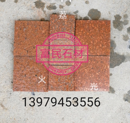 發(fā)布信息: 富民石材 付先生13979453556 主營: 帝王紅石材、紅砂巖石材,代代紅石材,映山紅石材,富貴紅石材,貴妃紅石材、四季紅石材,光澤紅石材,江西紅、沙漠棕石材、芝麻黑石材、芝麻灰石材等及相關(guān)的火燒板,荔枝板工程板,廣場石,路沿石等。廠礦一體,直銷貨源充足,歡迎來購! 家族企業(yè)誠信經(jīng)營!