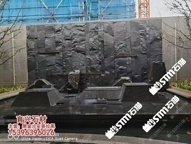 進口安哥拉黑水池水景異形石材加工定制黑水晶福鼎黑石