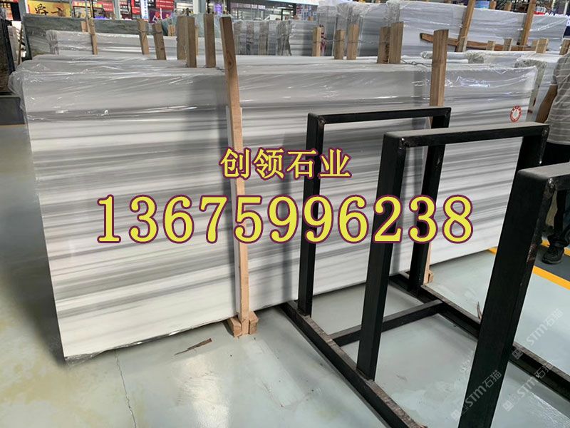 直紋白大理石天然石材電視背景墻別墅干掛地鋪石材定制