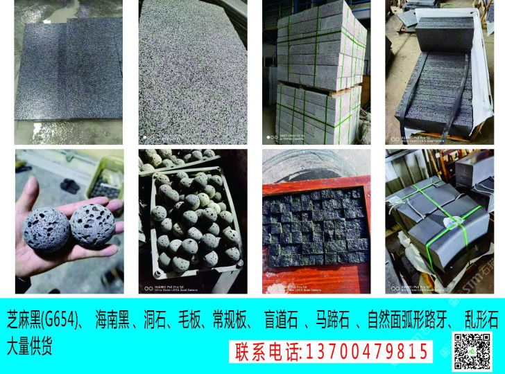 發(fā)布信息: 廠家直銷 廠礦一體 【主營】: 芝麻黑(新654),海南黑,火山巖,洞石等各種路沿石 火燒面、光面、荔枝面、機切面、蘑菇石、墓碑料、 自然面、盲道石、拉絲面,菠蘿面、異形加工等!承接國內外工程單,園林地鋪,外墻干掛等。規(guī)格齊全 保質保量, 歡迎新老客戶來電洽談合作!聯(lián)系電話: 13700479815小林