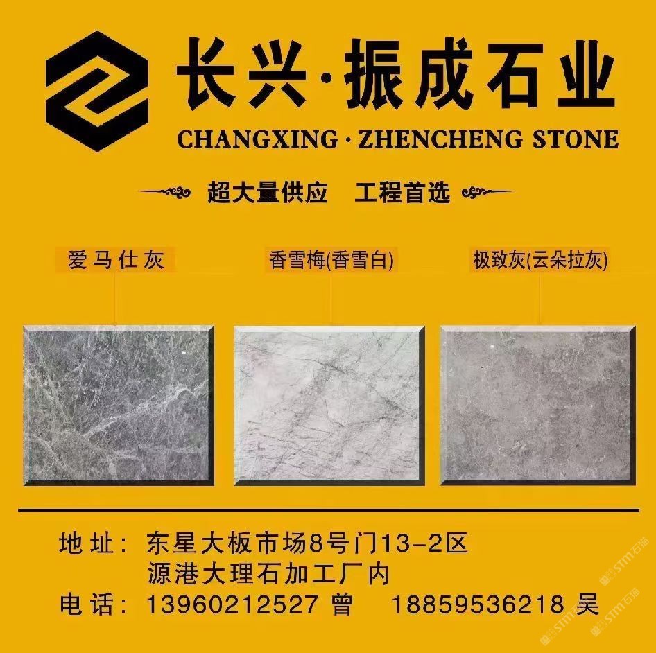 長興·振成石業(yè) 聯(lián)系人:曾志鋒    139****2527 查看 手機(jī)號碼:無 主營范圍: 大板批發(fā)、荒料、 企業(yè)地址:福建泉州東星大板市場8號門13區(qū)02號