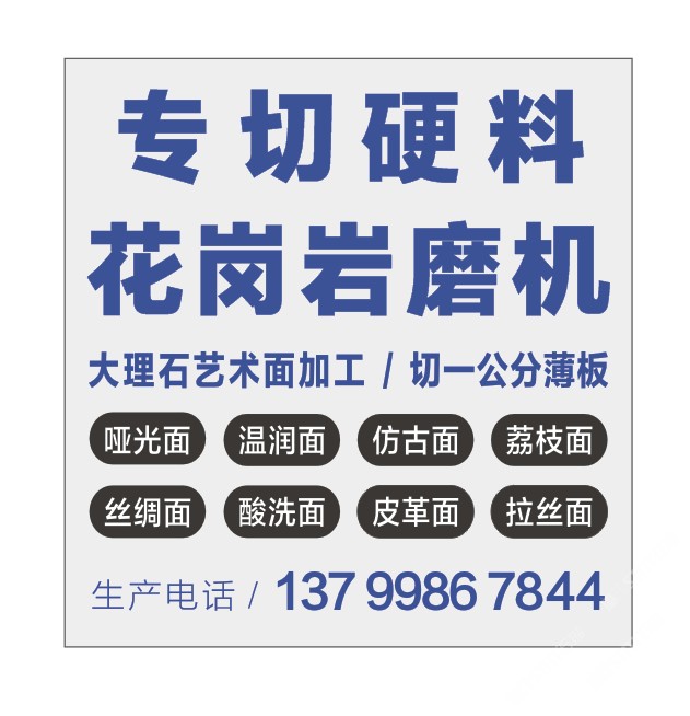 發(fā)布信息: 專(zhuān)切硬料 一公分薄板 花崗巖磨機(jī) 三臺(tái)靜壓拉鋸 一臺(tái)靖佑大理石磨機(jī) 一臺(tái)靖佑花崗巖磨機(jī) 意大利進(jìn)口磨頭 來(lái)料加工 大理石藝術(shù)面 荔枝面 皮革面 溫潤(rùn)面 仿古面 地址在埭頭村 聯(lián)豐工業(yè)區(qū) 8 號(hào) 興業(yè)石材廠(chǎng) 鴻群生產(chǎn)加工中心 馮廠(chǎng)長(zhǎng) 13799562486
