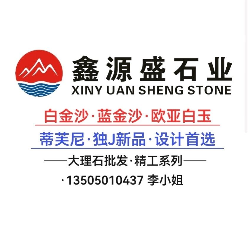 鑫源盛石材有限公司 聯(lián)系人:李    135****0437 查看 135****0437 查看 主營范圍: 大板批發(fā)、荒料、石材交易市場、 企業(yè)地址:福建泉州鵬翔第二大道5號路E7區(qū)/鑫源盛石業(yè).蒂芙尼,白金沙,歐亞白玉