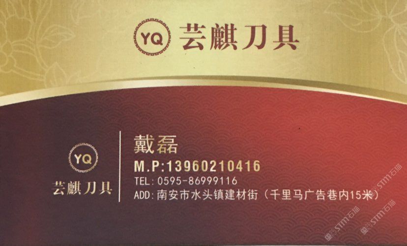 蕓麒刀具 聯(lián)系人:戴磊    139****0416 查看 手機(jī)號碼:無 主營范圍: 其他、 企業(yè)地址:福建南安水頭鎮(zhèn)建材街千里馬廣告巷內(nèi)