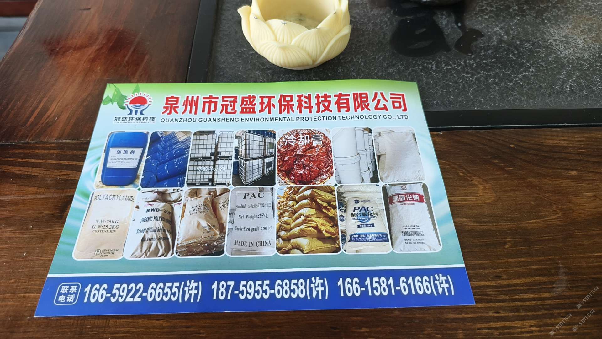 冠盛水處理材料批發(fā)部【環(huán)境污染處理材料】 聯(lián)系人:許天灌    153****6521 查看 166****6655 查看 主營范圍: 其他、石材輔料及特殊工藝、更多、環(huán)境石材、 企業(yè)地址:福建南安石井鎮(zhèn)院下村新街308-11號(冠盛環(huán)??萍迹?/span>