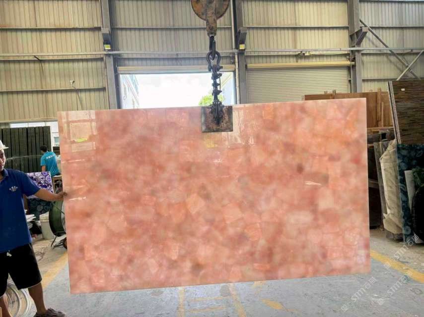 商圈 > 玉石&半寶石 > 批發(fā)定制粉水晶大板,透光石材,半寶石板材