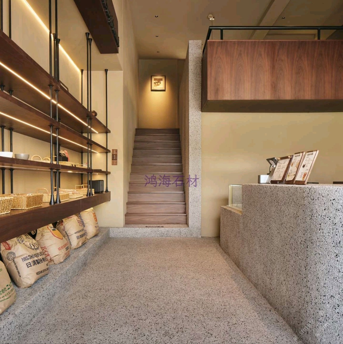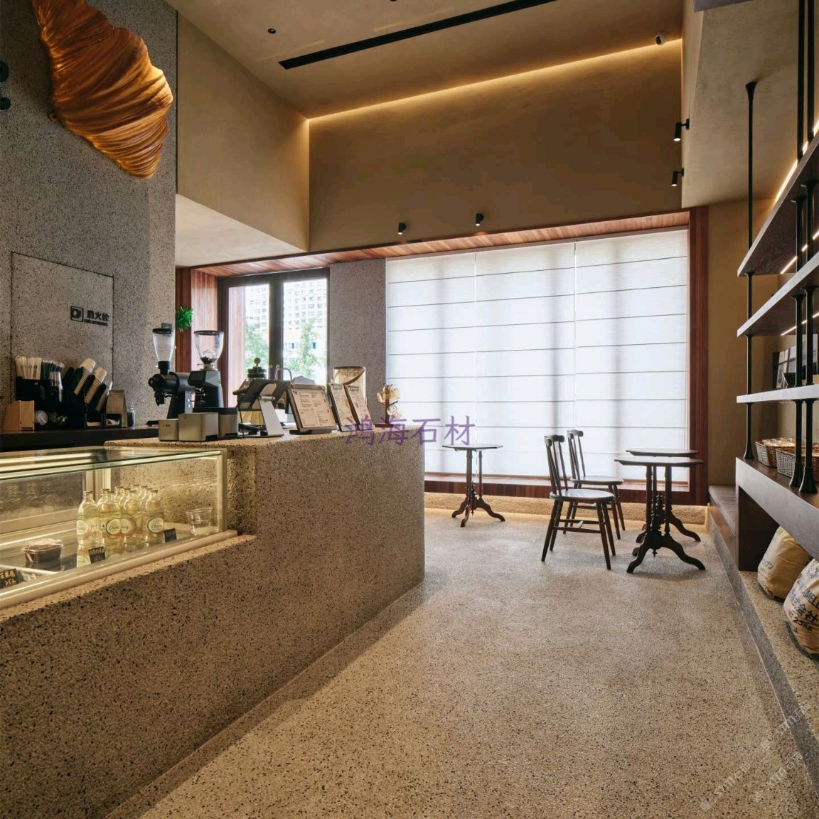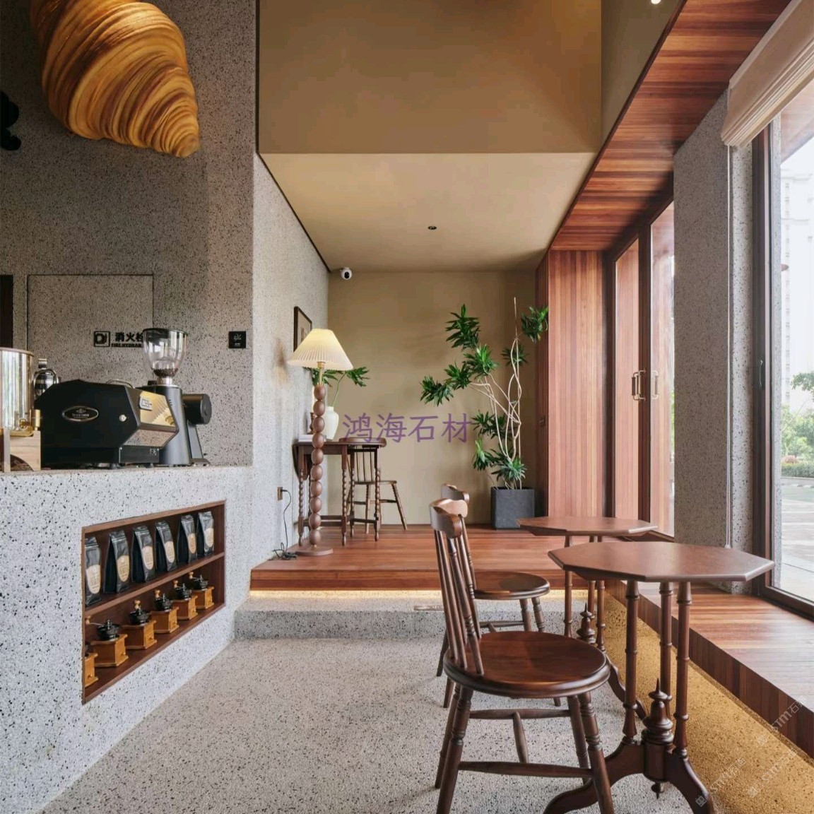 發(fā)布信息: 咖啡店設計干貨|水磨石 木格柵的組合 一進門就被水磨石打造的吧臺狠狠洗衣,顆粒感的肌理搭配溫潤的木質吊柜,觸感和視覺的碰撞真的太妙了~ 墻面的“與你相識雖不晚”直接戳中內心,旁邊的巨型可頌裝置既是裝飾又點明了品類,細節(jié)感拉滿。 動線設計也很舒服,點單區(qū)和取餐區(qū)劃分清晰,哪怕人多也不會覺得擁擠,把功能性和美學平衡得恰到好處。
