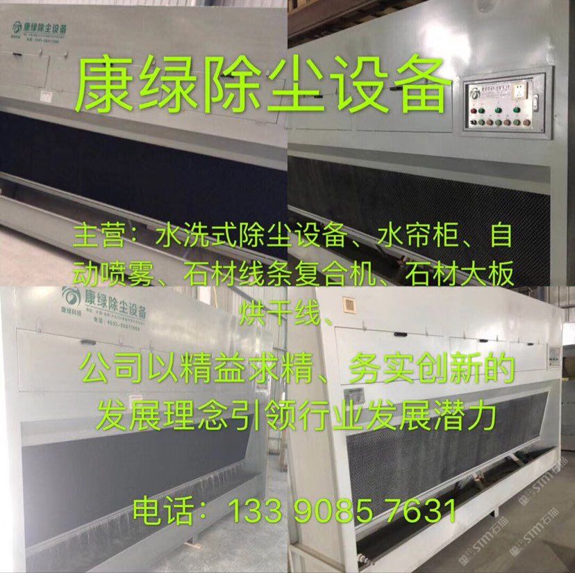 發(fā)布信息: 康綠環(huán)??萍加邢薰荆核词匠龎m設備,水簾柜,自動噴霧,石材線條復合機,石材大板烘干線,聯(lián)系電話:18150567739,微信同步。