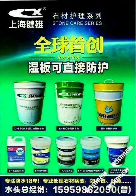 發(fā)布信息: 需要做防水的找我哦!主營:水性防水劑,油性防護劑(濕板直接防水,質(zhì)量超級好?。?,花崗巖除銹劑(超級好用,不會再反銹),大理石除黃劑,花崗巖增色增艷劑!水斑劑等等!咨詢電話??15959862050