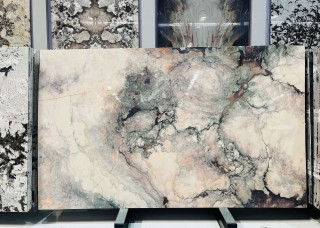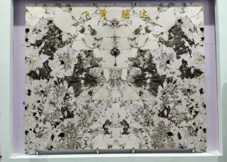 熊貓白奢石餐桌 天然水墨