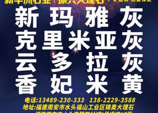 豪昌石業(yè)主營(yíng)產(chǎn)品:凱撒灰,凱撒灰(昆明礦),凱撒灰(巴拿馬灰),國(guó)際灰,云多拉灰(貴州),凱撒米黃1,新凱撒灰,凱撒灰3,凱撒灰2,古堡灰(貴州),白海棠,新白海棠,云多拉灰,云朵拉灰,云多拉灰(胖子礦),幻影灰,幻影灰(JX礦),灰姑娘,克里米亞灰,克羅地亞灰,羅曼蒂克灰,羅馬尼亞灰,啡慕斯,卡地亞灰7,魚肚灰,灰姑娘(老礦),灰姑娘(白底),愛馬仕灰,金鑲玉企業(yè)地址:福建泉州南安市G324(福昆線)明超石業(yè)精品館2號(hào)通道