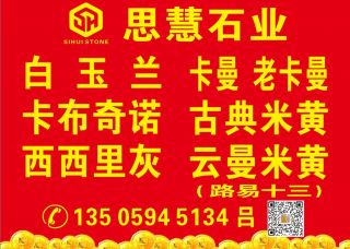 思慧石業(yè)主營產(chǎn)品:白玉蘭,白玉蘭3,白玉蘭(8號礦),白玉蘭(艾斯特),白玉蘭(白珍珠),白玉蘭ECE,白玉蘭(EG礦),白玉蘭(飛馬礦),白玉蘭2,白玉蘭1,白玉蘭4,西西里灰,西西里灰1,西西里灰2,古典米黃,古典米黃1,卡布奇諾,云曼米黃,云曼,卡曼,卡曼米黃,金卡曼,路易十三,路易十三1(CGM),勞力士灰,奧特曼,歐曼米黃,奧特曼(巴拉礦),奧特曼(捷成礦),奧特曼(卡麻桑礦),奧特曼(老蕭礦),奧特曼(卡瑪薩礦),奧特曼米黃,奧特曼金,白玉蘭(胖子礦),白玫瑰企業(yè)地址:福建泉州東升石材城4號門通道走到底左手邊D26