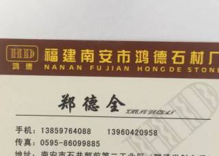 南安市石井鎮(zhèn)郭前村鴻德石材廠主營產(chǎn)品:G657,G606(礱石),G606(正礦),G606(副礦),G602,G603,銹石G682,銹石(荔枝面),港尾銹石(光面),角美銹(火燒面),石井銹石(光面),沙漠棕1,G617,喬治亞灰3,新654,G636(福建礦),G636(火燒面),G636企業(yè)地址:福建南安石井鎮(zhèn)郭前村鴻德石材廠